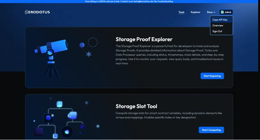 - Navigate to https://staging.dashboard.herodotus.dev/